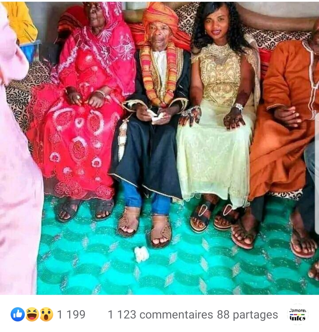L’amour n’a pas d’âge. C’est un grand mariage d’amour. Une jeune femme comorienne épouse un homme qui aurait l’âge d’être son grand-père. L’image a créé le buzz dans les réseaux sociaux. Plusieurs personnes félicitent le couple.