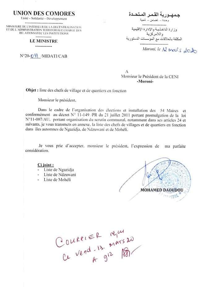 La République n’est pas faite après vous, elle est là avant vous, et c’est elle qui fixe les règles à travers le législateur. Certes vous êtes l’administrateur, qui est chargé de le payer, mais vous n’êtes pas l’employeur direct des chefs de villages et des quartiers. Le législateur a pris le soin de fixer les missions de chaque département ministériel. Pourquoi s’arroger des missions des autres. La loi sur le scrutin communal dispose que c’est au ministère de l’intérieur chargé des élections de communique la liste des chefs de villages et de quartiers à la commission électorale nationale indépendante (Ceni) pour l’organisation de l’élection du maire de chaque commune.