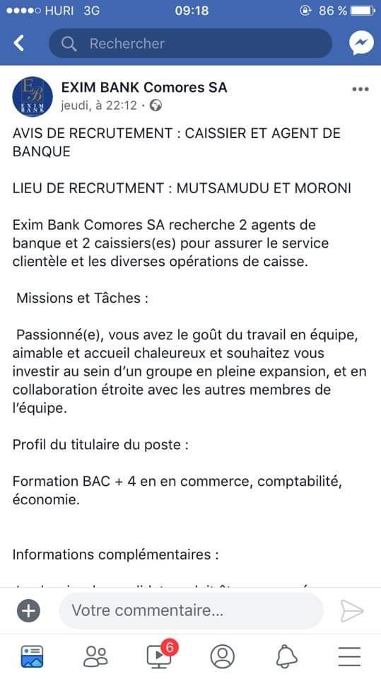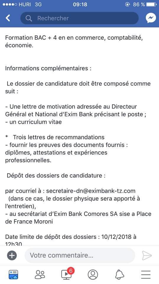 Exim Bank publie une offre d’emploi jeudi 6 décembre pour une date limite arrêtée au 10 décembre.