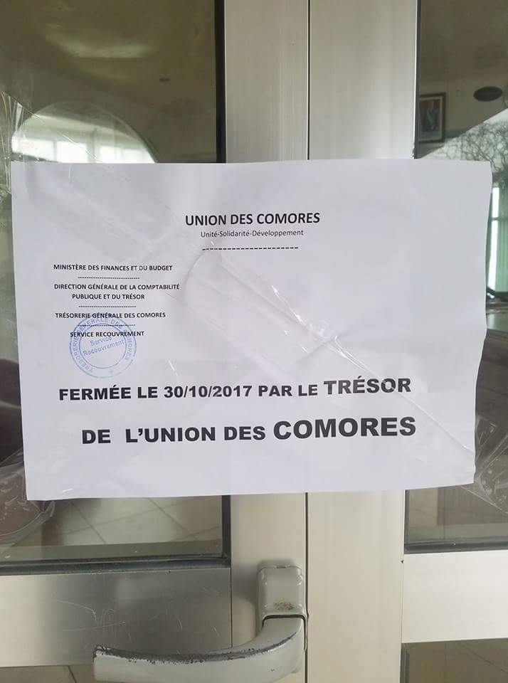 Le trésor public a décidé de fermer l’hôtel Khartala. Selon une source Comores infos, l’hôtel est fermé à cause d’un retard de paiement d’impôts au trésor d’une somme de 3 000 000 fc.
