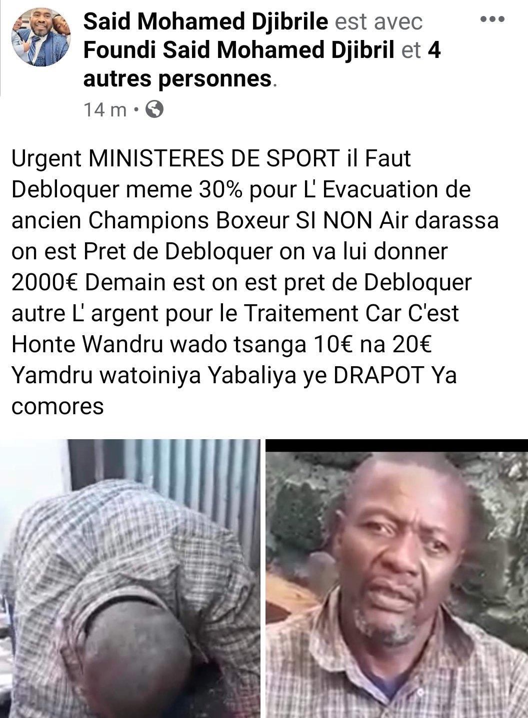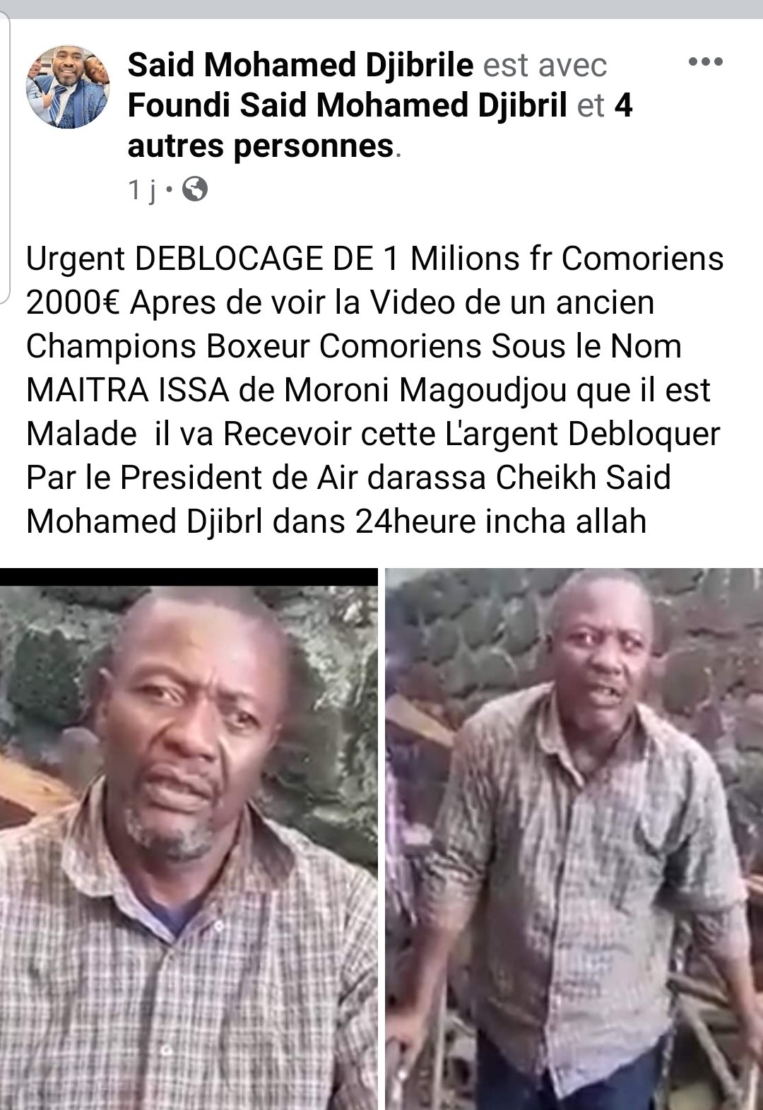 Le prédicateur religieux Djibril et ses disciples vont débloquer plus de 2000 euros pour aider un ancien boxeur. Djibril appelle également le ministère des sports à faire un geste humanitaire.