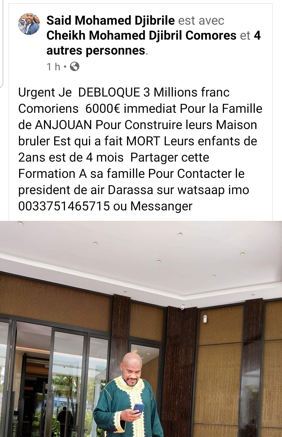 La famille endeuillée après l’incendie de leur maison et qui a fait deux morts obtiendra une aide d’urgence de 3 millions soit 6000 euros. Foundhi Djibril débloque 6 000 euros pour accompagner la famille qui a perdu ses 2 enfants à reconstruire la maison familiale.