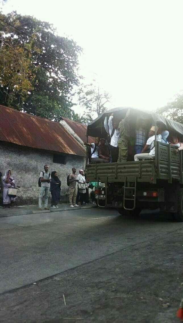L’armée a mis disposition ses camions pour transporter les étudiants vers l’université.