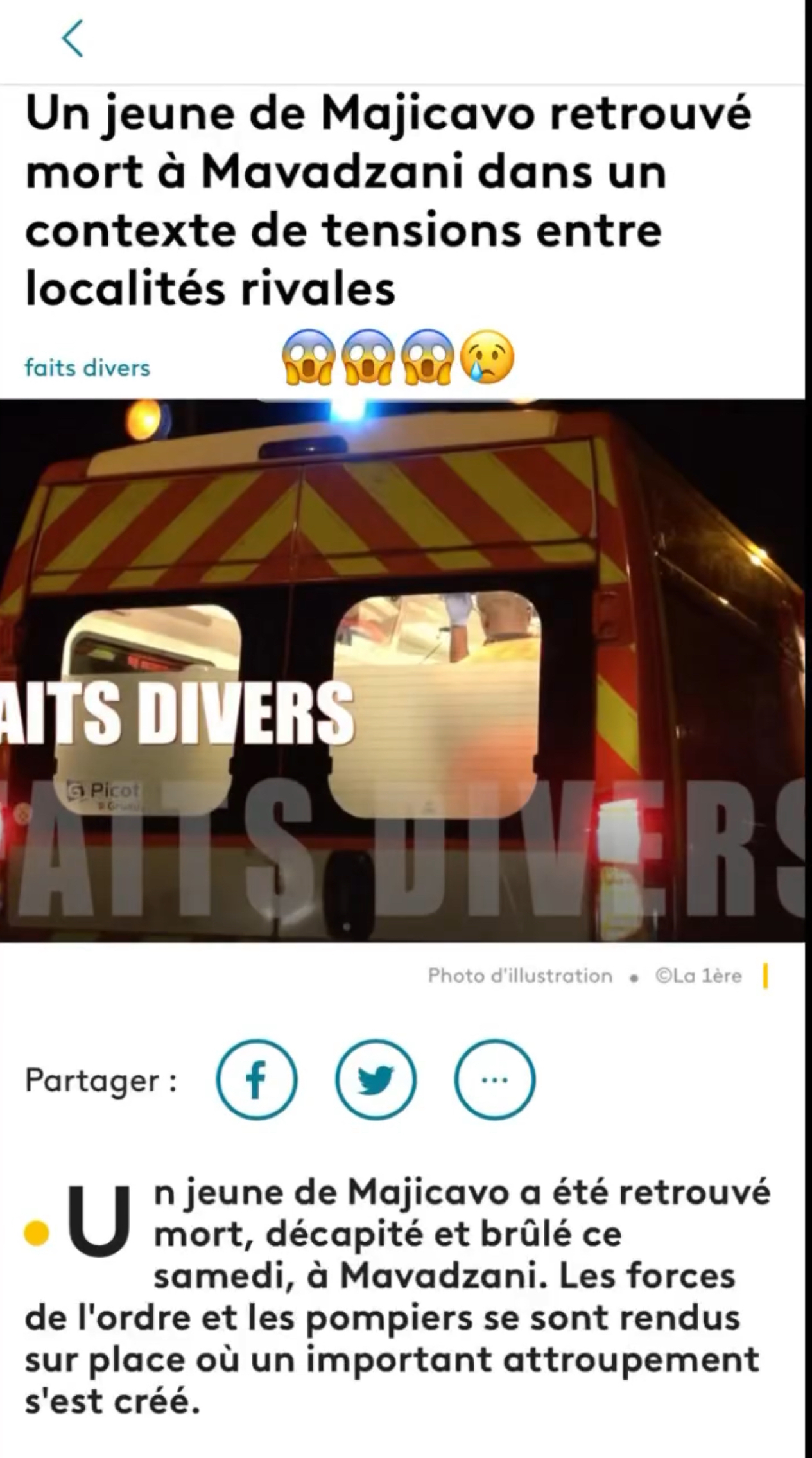 Sur place, pompiers et forces de l’ordre ont dû intervenir, tandis qu’un impressionnant attroupement d’hommes se formait autour de la scène macabre. Cet épisode survient après une semaine de violences continues entre Majicavo et Kawéni, deux localités déjà endeuillées par plusieurs morts lors d’affrontements précédents.