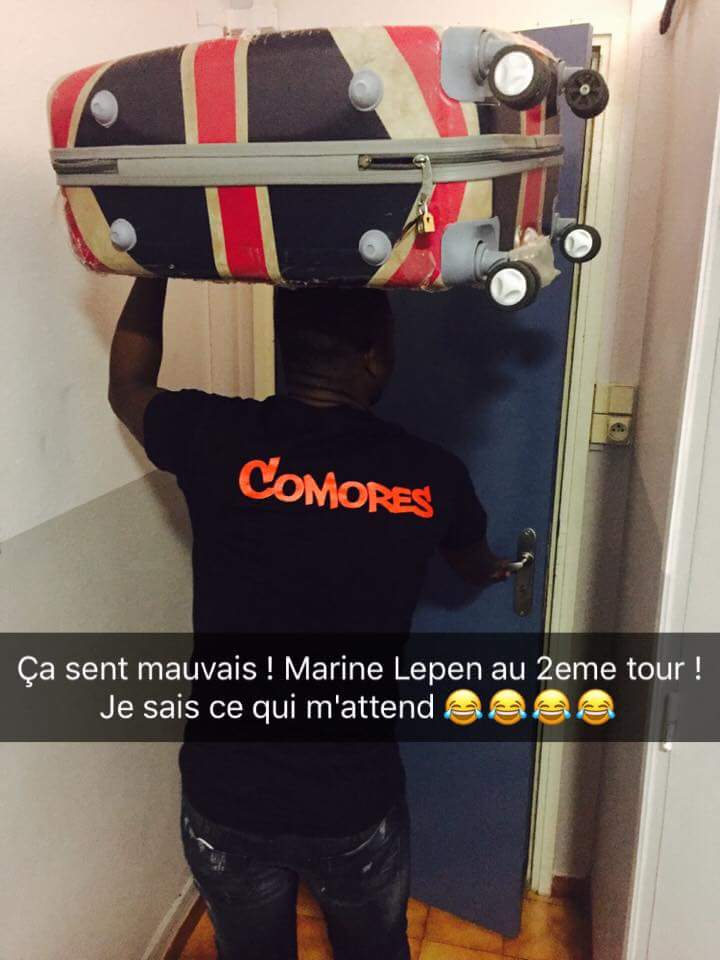 HUMOUR. Marine Le Pen au deuxième tour de l’élection présidentielle en France fait réagir les internautes. Une image humoristique pour montrer les conséquences d’une victoire de Marine Le Pen. Les immigrés feront les valises pour un retour…