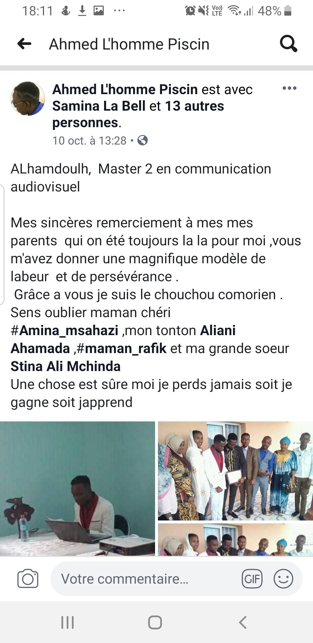 Les étudiants diplômés de Madagascar achètent-ils leurs diplômes ? Un jeune comorien diplômé en communication massacre la langue française sur Facebook.