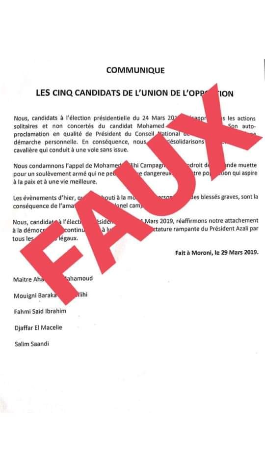 Je viens de prendre connaissance de ce document qui me désolidariserait du Colonel Soilih Mohamed Campagnard.