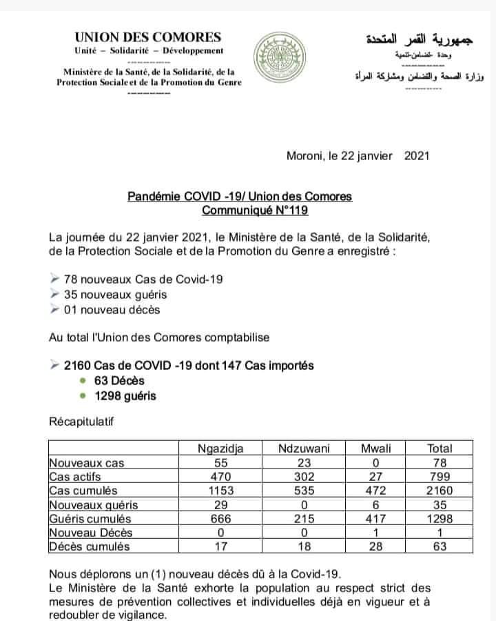 Pour rappel, le dernier bulletin de santé sorti par le ministère de la santé a fait état de 2160 cas positifs de COVID-19. Voici le dernier bulletin