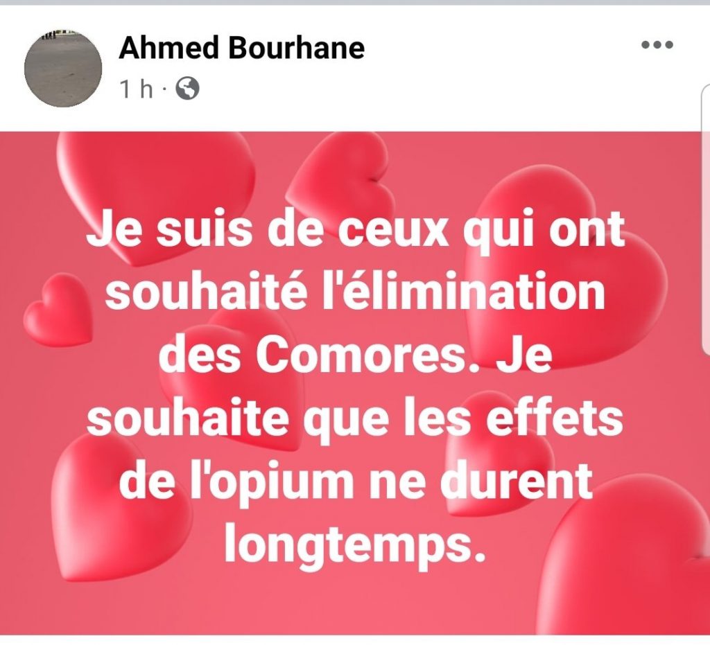 Un membre du Daoula ya haki, Ahmed Bourhane souhaite la défaite et l’élimination des Comores à la CAN.