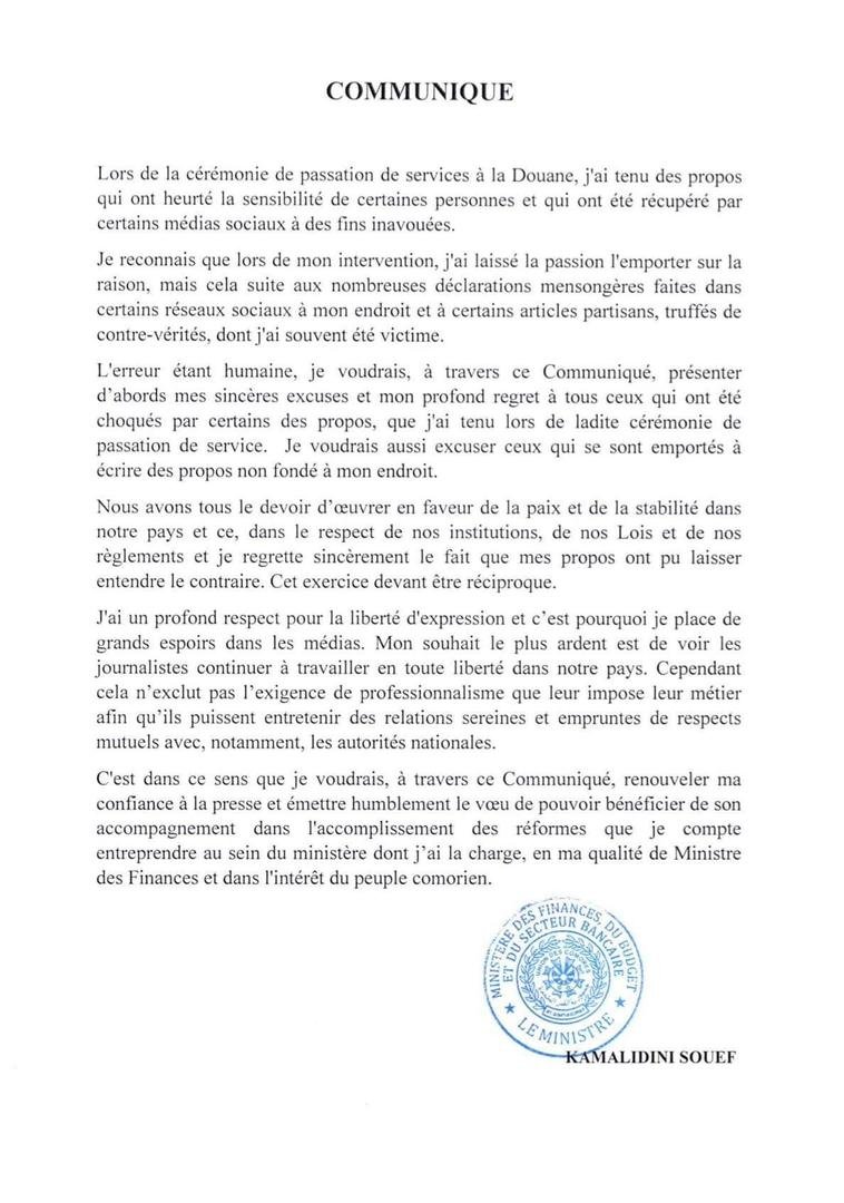 Le ministre des finances Kamal soef s’excuse mais ils accusent les médias sociaux or il a bien tenu les menaces contre les journalistes.