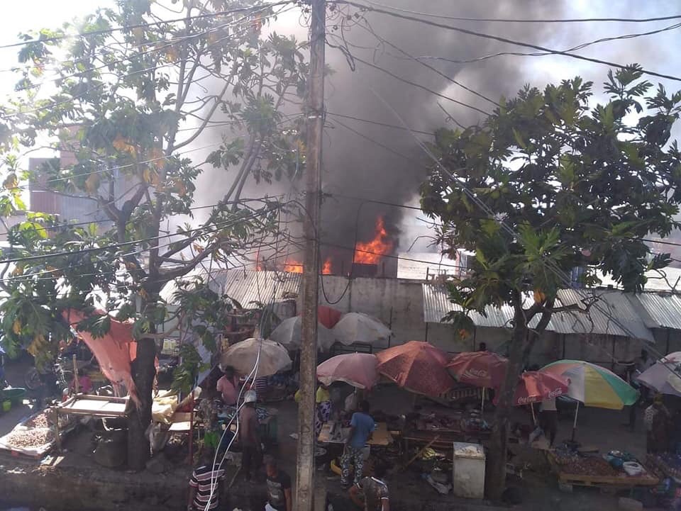 Aux alentours de cette fumée suffoquant, on trouve le marché où l’on vend des produits de première nécessité pour la survie de la population.