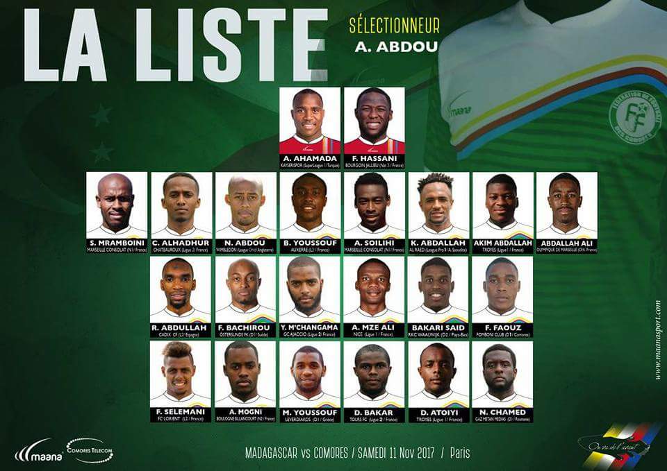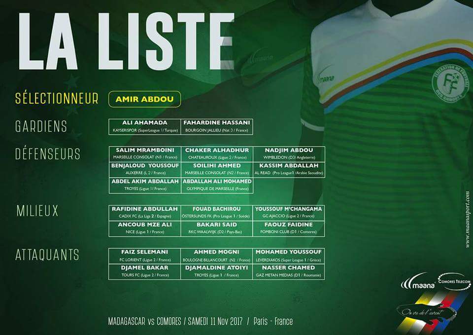 Voici la liste de coach Amir Abdou pour le derby de L’Océan Indien face à Madagascar le samedi 11 novembre !