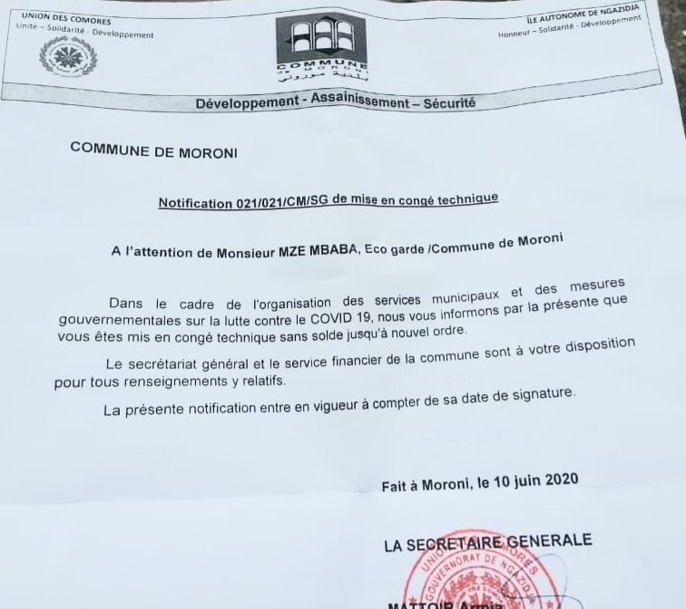 Pour lutter contre le Covid-19, la mairie de Moroni a renvoyé certains agents à la maison et sans solde. C’est le cas de Mze Mbaba, chef de famille qui se retrouve désormais sans revenus pour faire vivre sa famille.