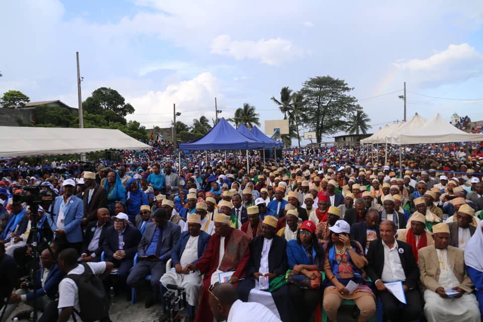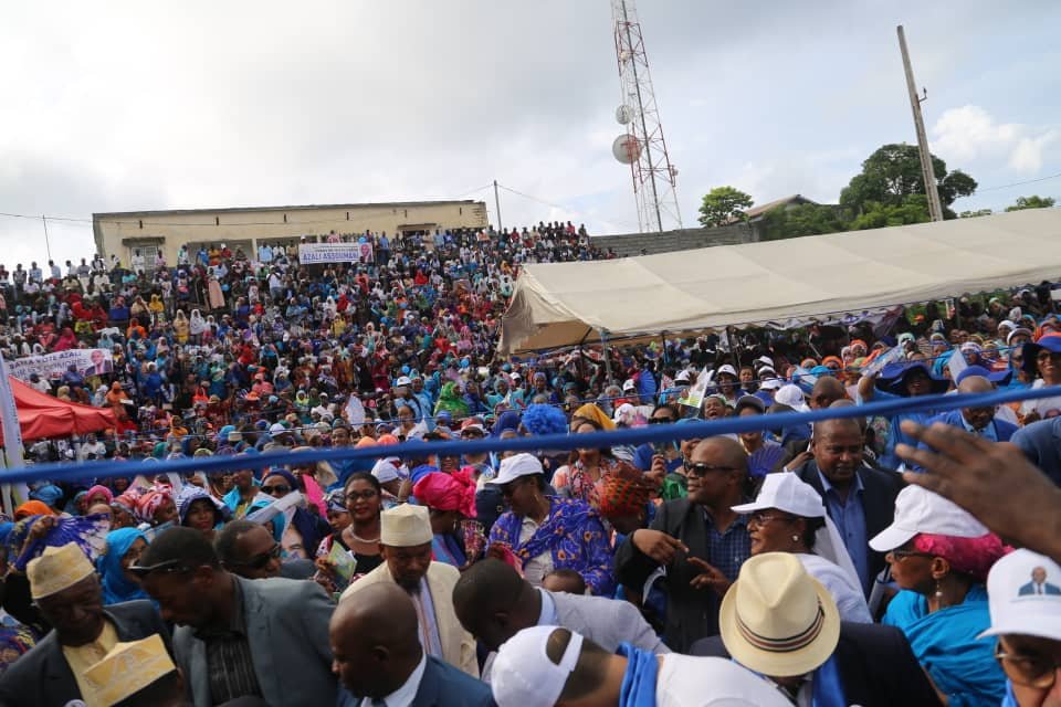 Des milliers de personnes de Mbadjini ont fait doubler la population de Foumbouni. Il y a environ en ce moment plus de 13 000 personnes à Foumbouni. La mouvance présidentielle continue d’être le leader des fortes mobilisations. C’est encore une marée humaine.
