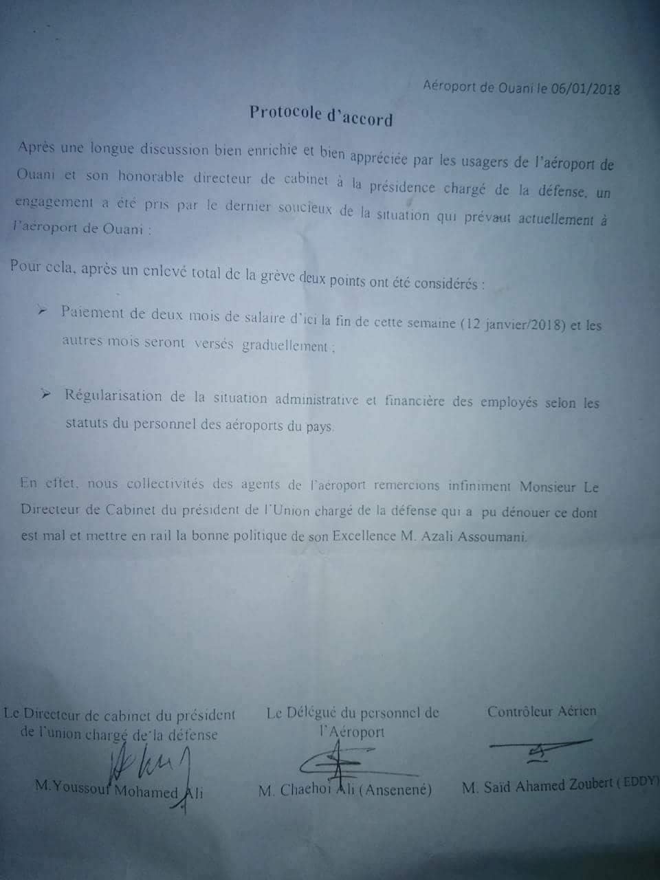 Les salariés de l’aéroport d’Ouani réclament deux mois de salaire. Ils ont décidé d’arrêter le travail dans les prochains jours. L’aéroport d’Ouani sera fermé le mercredi prochain.