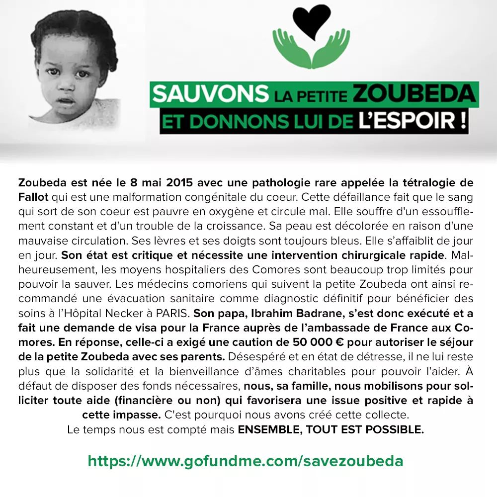 L’ambassade de France aux Comores exige une somme considérable pour mettre un visa à une petite fille malade. Elle n’a pas demandé à être malade, elle ne va pas s’installer en France, elle ne demande qu’à vivre. Elle aurait pu être notre fille, votre fille ou celle des voisins.