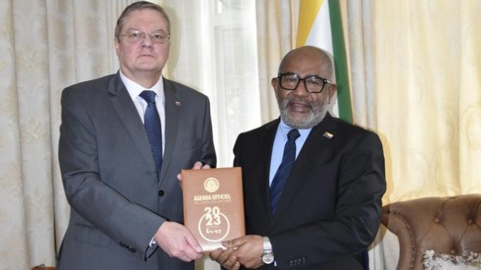 L’ambassadeur de la Fédération de Russie accrédité en Union des Comores résidant à Madagascar, SEM. Andrey Andreev, a effectué une visite de travail à Moroni où il a été reçu à Beit Salam. Cette rencontre était l’occasion pour SEM. Andreev de discuter avec S.E.M. AZALI Assoumani, Président de l’Union africaine et Président de l’Union des Comores, de la volonté commune de renforcer la coopération russo-africaine et de développer davantage les relations russo-comoriennes.