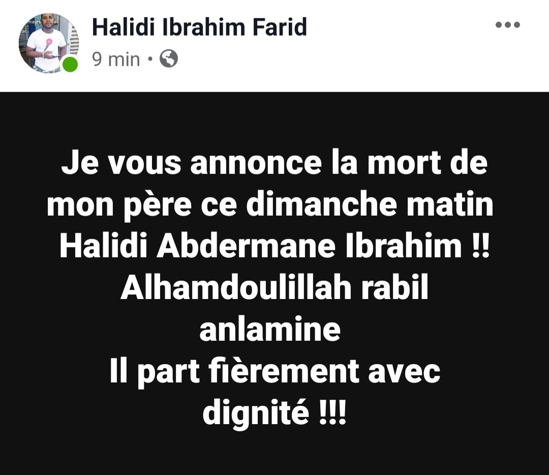 Inna lillah wa inna illaih radjioun que dieu lui pardonne et lui ouvre la porte du paradis ! Pour cette occasion, je lance un appel à nos dirigeants actuels que la mort nous attend tous et vous emprisonnée des gens sans jugement mais dieu vous attend pour vous juger à son tour.