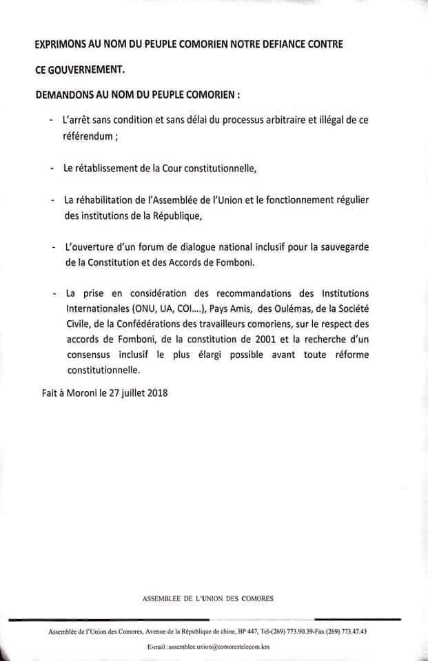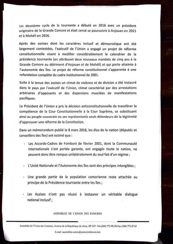 3 commentaires sur L’assemblée nationale demande au président Azali Assoumani de tout arrêter