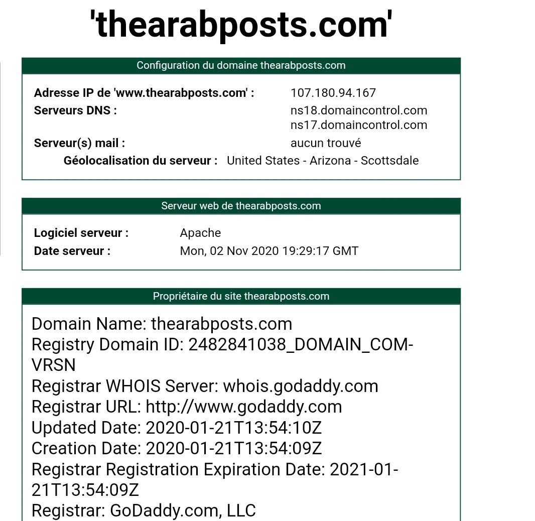 Voici la date de l’achat du nom de domaine et la création de ce petit blog qui est suivi par moins de 15 personnes sur Twitter et qui n’a pas de page Facebook. Il a réussi son coup avec la complicité des services secrets Comoriens. Le blog ne possède ni adresse physique, ni rédacteur en chef… Mais comme certains pensent que tout ce qui vient du monde arabe est vérité, ce petit blog a créé la grosse polémique.