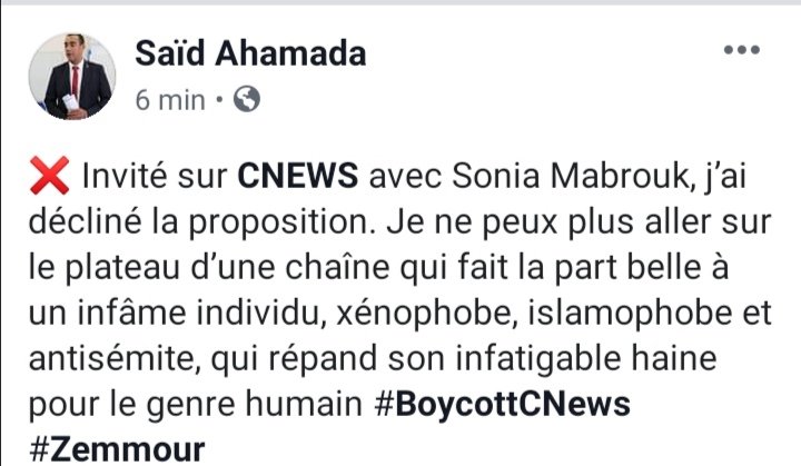 plateaux de CNews. Voici son argument :