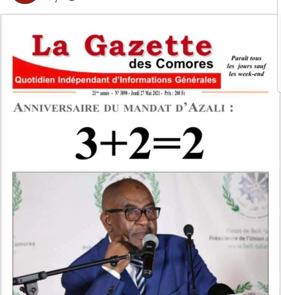 Là Une de LGDC de ce 27 mai a mis en colère le gouvernement et pour cause, le quotidien a rappelé le manque de cohérence et de logique du gouvernement. Depuis 2016, le président Azali est à la tête de l’état, il a donc fait 5 ans au pouvoir et non 2 ans comme il le proclame tout haut.