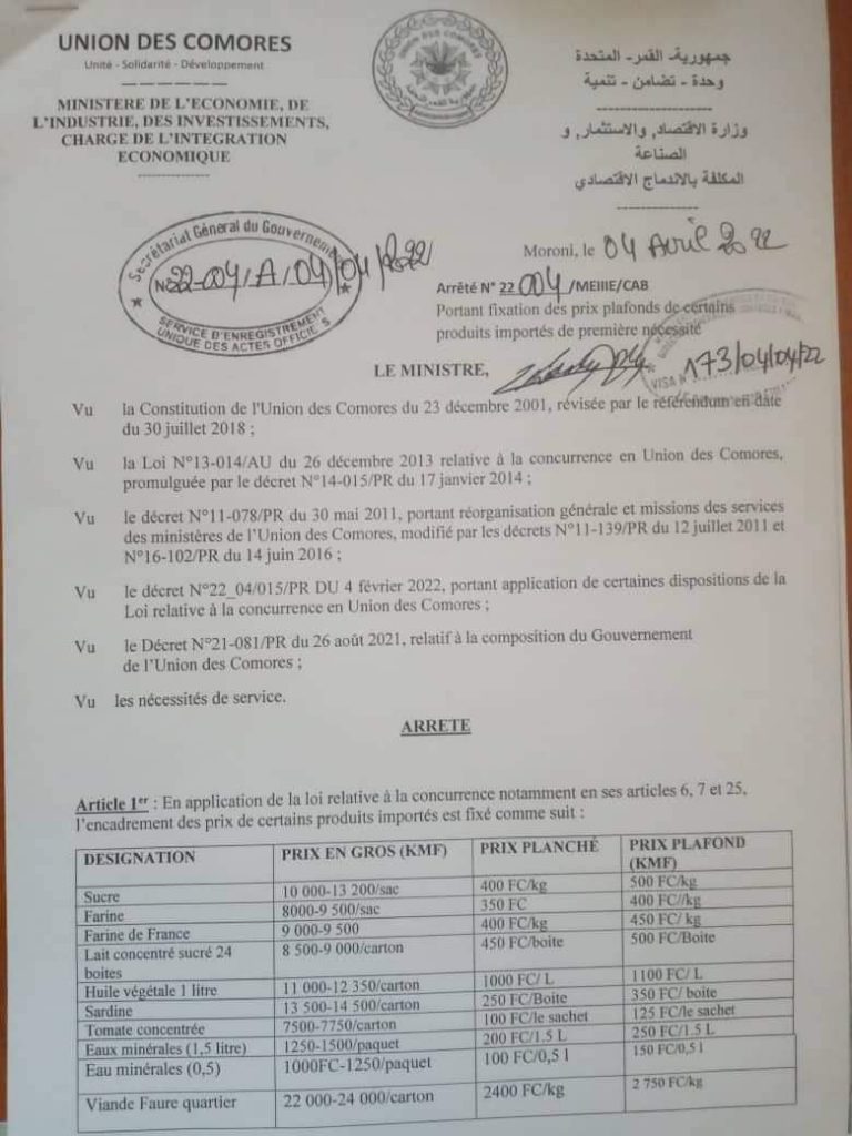 Avec la flambée des prix, le gouvernement comorien vient de fixer les prix des produits alimentaires en ce mois de ramadan.