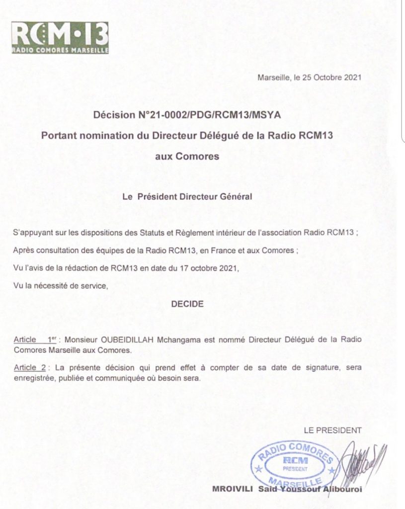 Le journaliste Oubeid Mchangama est nommé directeur délégué chez nos confrères de RCM13.