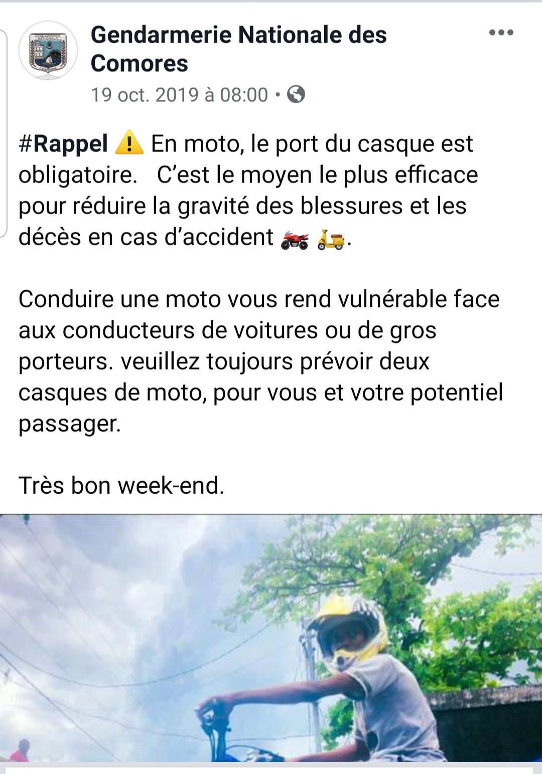 Voilà l’exemple que le ministre donne aux jeunes. Plusieurs jeunes sont morts l’année dernière en moto et ils ne portaient pas de casque. Il y’a une semaine deux personnes sont mortes et elles ne portaient pas de casque lors de l’accident.