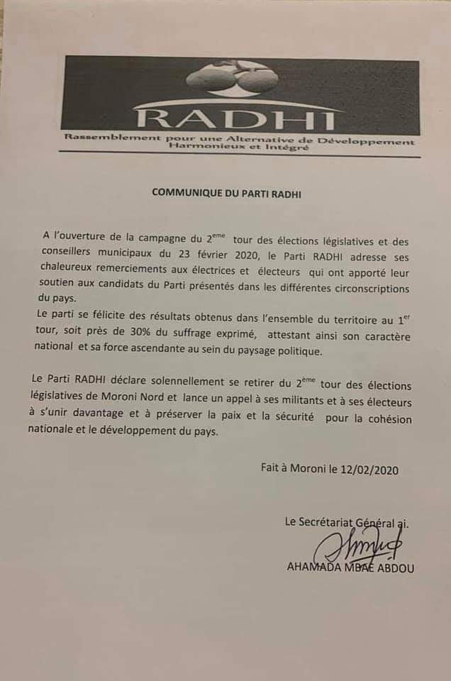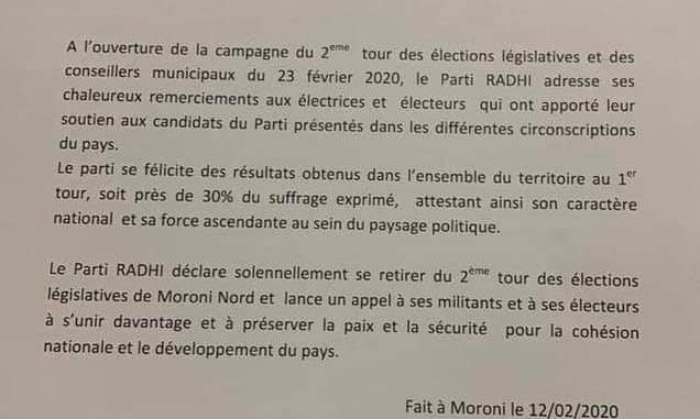 Les élections législatives sont terminées pour le parti Radhi.