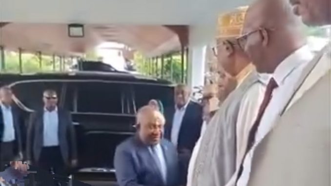 Pendant plusieurs jours, des rumeurs circulaient, certains affirmant que le président pourrait ne pas être aux Comores ou que son état de santé pourrait être plus grave que ce qui avait été annoncé. Cependant, cette apparition met fin à ces incertitudes. Une vidéo récemment diffusée montre Azali Assoumani quittant un lieu, montant dans son véhicule, puis une autre séquence où il est vu en train de descendre de voiture et de saluer plusieurs personnes présentes à l’extérieur, dont le directeur de cabinet chargé de la défense. Le président semble en bonne humeur, échangeant une plaisanterie avec ce dernier, ce qui a provoqué des rires parmi l’assistance.