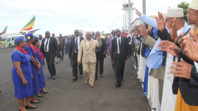Après un long périple qui l’aura conduit au Sénégal et au Royaume du Maroc le Président de la République Azali Assoumani est arrivé en début d’après-midi à Moroni, ce mercredi 19 décembre 2018. Il a été accueilli par l’ensemble des membres du Gouvernement, du cabinet du Président de la République, des Gouverneurs et une foule nombreuse, à l’Aéroport International Prince Said Ibrahim.