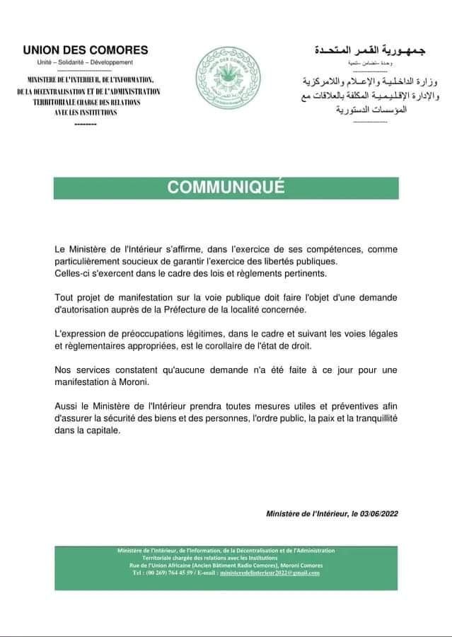 Le rassemblement de ce samedi 4 juin est interdit par le ministère de l’intérieur