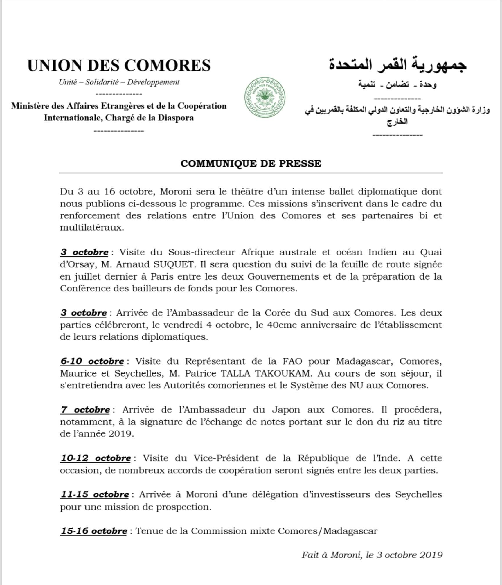 Le vice-président de la République d’Inde sera prochainement à Moroni