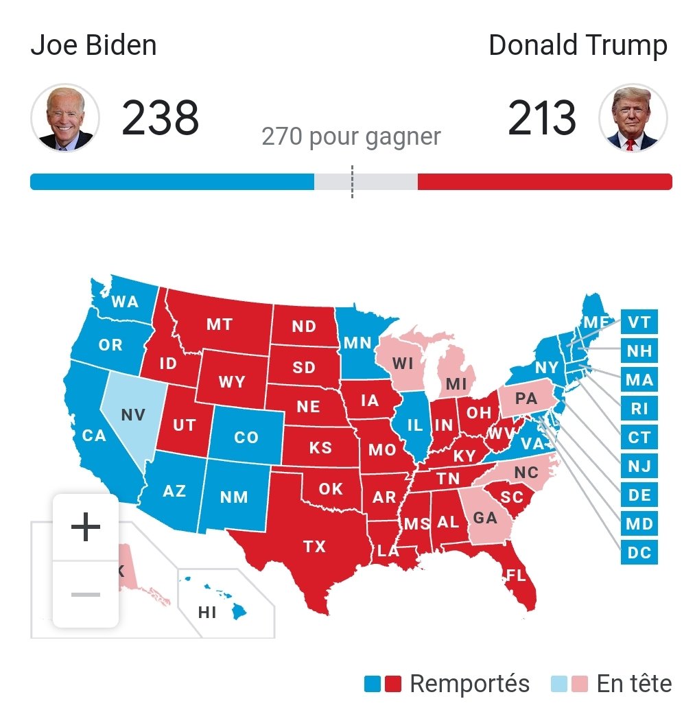 Dans peu de temps les résultats officiels seront connus concernant l’élection présidentielle aux États-unis. Le duel est serré entre Joe Biden et Donald Trump.