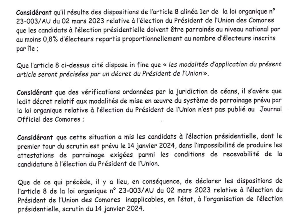 À quelques heures du scrutin, Mouigni Baraka exprime l’idée d’un consensus quant aux parrainages pour l’élection présidentielle aux Comores. Cependant, cette proposition a été rejetée par la Cour suprême en raison de contraintes temporelles. Un point qui soulève des interrogations sur la gestion du temps et de la planification dans cette phase cruciale du processus électoral.