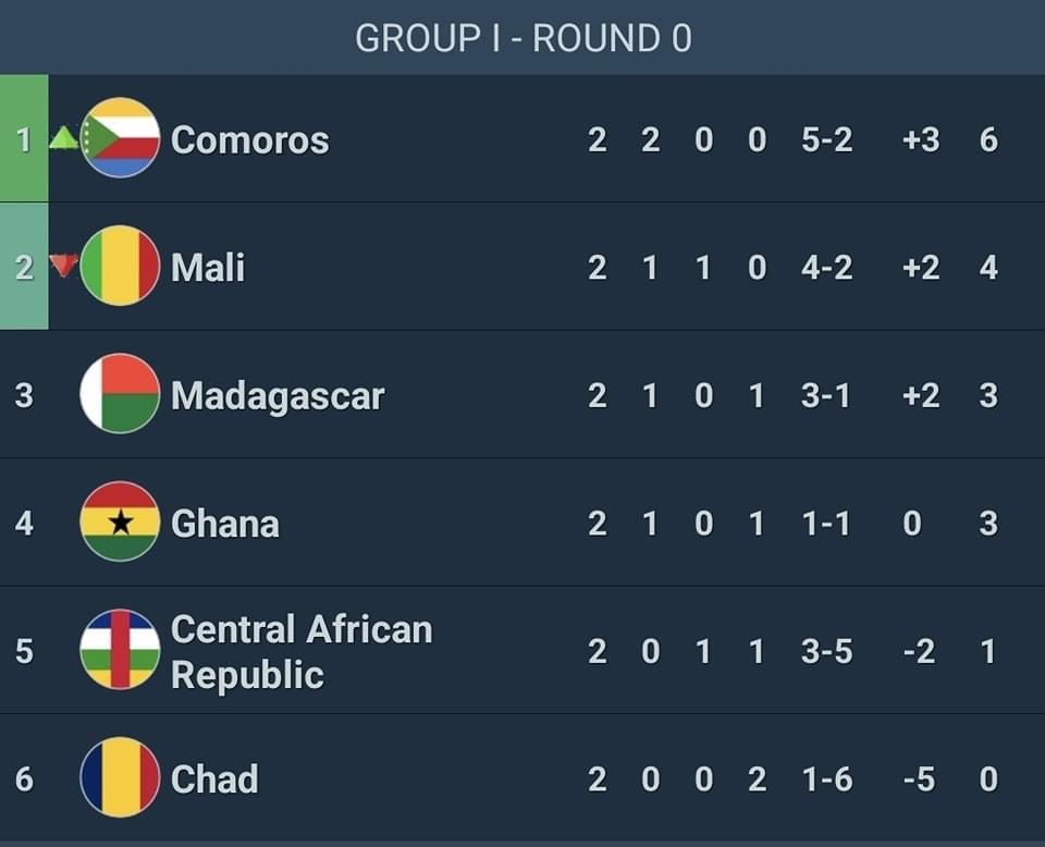 Le classement actuel du groupe confirme la position dominante des Comores, qui devancent le Mali avec 4 points (+2) et Madagascar avec 3 points (+2). Le Ghana, malgré ses efforts, se trouve actuellement à la quatrième place du groupe avec 3 points et une différence de buts nulle.