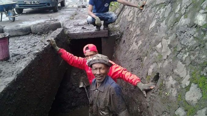 Il a fallu presque une semaine pour y parvenir. Des ouvriers qui ont travaillé dur, d’abord pour localiser l’endroit susceptible d’être bouché sans plan de l’ouvrage. Une fois détecté, il leurs a fallut trouver le moyen d’enlever le bouchon sans outils adaptés pour ce travail dans des conditions difficiles puisqu’il pleuvait des cordes.