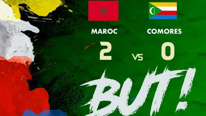 But du Maroc à la 89eme minute. Le score est de 2-0 avant le coup de sifflet final malgré un Salim Ben Boina phénoménal.