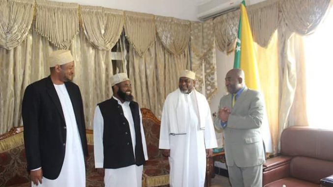 Le bureau exécutif de l’union des Oulémas de la ville de Moroni a été reçu par le Président de la République au Palais présidentiel de Beit Salam ce samedi 10 décembre 2016. Les Hatubs de la Capitale sont venus d’abord informer le Président de l’existence de cette structure dont les missions sont notamment la supervision des actions des mosquées, notamment les mosquées de vendredi de la Capitale, l’enseignement dans les écoles coraniques et la protection des valeurs de notre Islam de tolérance Ahl Sunna wal Djamaan. Les Oulémas sont venus ensuite solliciter le concours du Chef de l’Etat dans la formation des Imams et de magistrats du tribunal cadial. Ils ont montré une profonde inquiétude dans la perte de certaines valeurs de notre religion. Mais ils sont certains que le Président que le peuple comorien a élu, un érudit de l’Islam, est l’homme providentiel pour défendre cet Islam qui a fait le ciment de notre société. Ils ont rendu Grace à Allah pour leur avoir envoyé un Imam pieux et fin connaisseur des percepts de l’Islam et des traditions de notre pays.