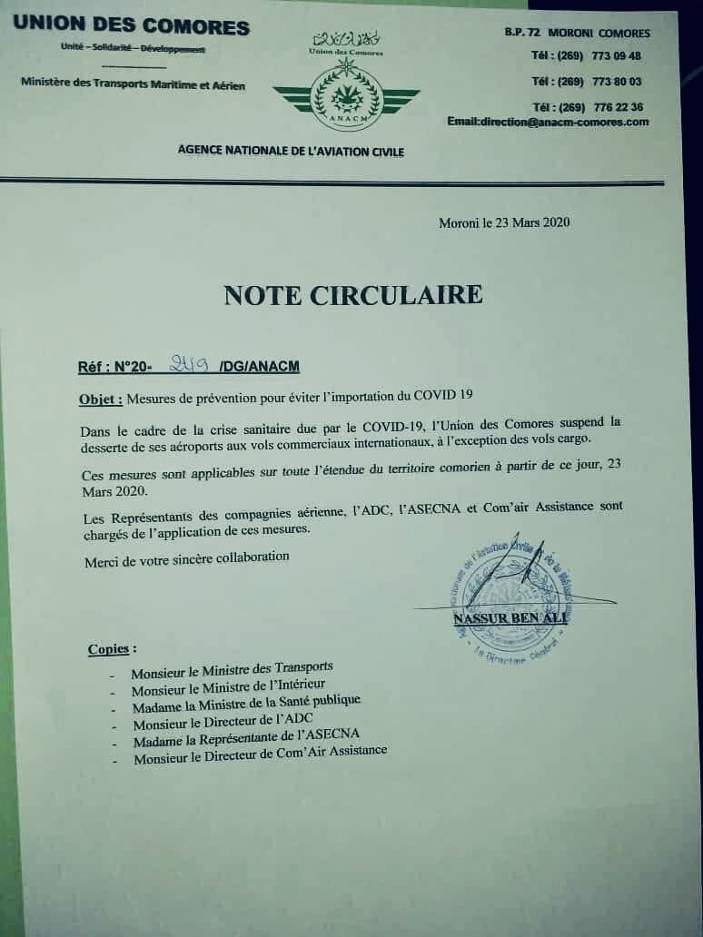 Les frontières sont totalement fermées depuis hier lundi 23 mars malgré les centaines de passagers bloqués dans les pays voisins notamment à Madagascar, Kenya et Tanzanie.
