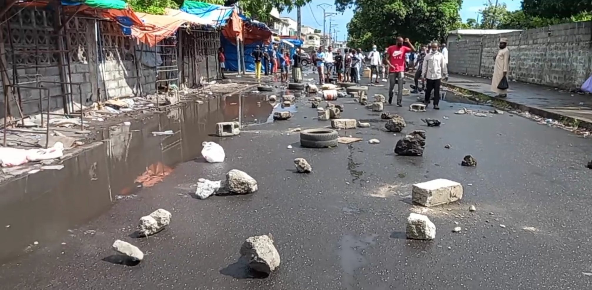 Quelques minutes, les rues sont bloquées par des pierres et autres objets en ce moment