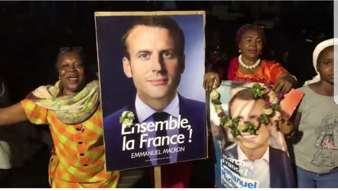 Présidentielle Française: La place Nimbé à Mamoudzou à Mayotte* est envahie par une marée humaine venue fêter la victoire d’Emmanuel Macron élu ce dimanche 7 mai nouveau Président de la République Française.