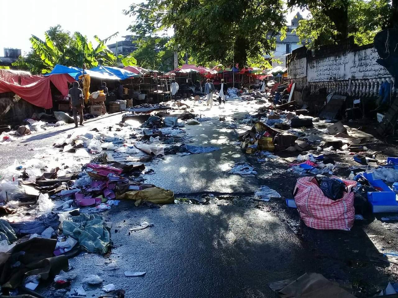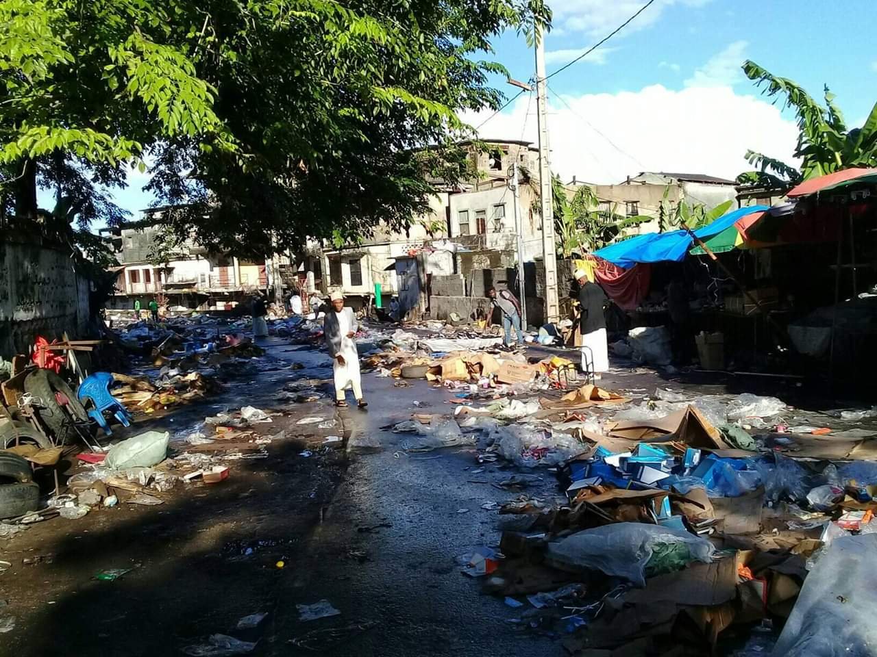 Le marché de la ville de Moroni est impraticable. Les Wassafarinis qui vendaient les marchandises ont laissé tout jeté par terre, les déchets décorent le paysage en ce jour de fête. La rue est remplie d’ordures. Des dépotoirs d’ordures à gogo se situent à chaque coin de la rue qui mènent vers le marché. La situation est trop alarmante dans les différents marchés de Moroni. Regardez la vidéo ci-dessous prise en ce jour de l’Aid El-fitr: