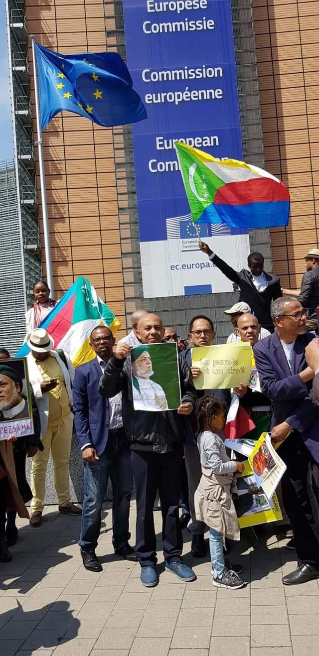 Des militants contre la dictature azaliste se sont rendus hier samedi 15 juin devant les bureaux de l’UE à Bruxelles,en présence du Délégué à l’International du CNT (SMS) du Président de SOS-Democratie aux Comores, en écho aux manifestations initiées dans diverses localités aux Comores, ce Vendredi.