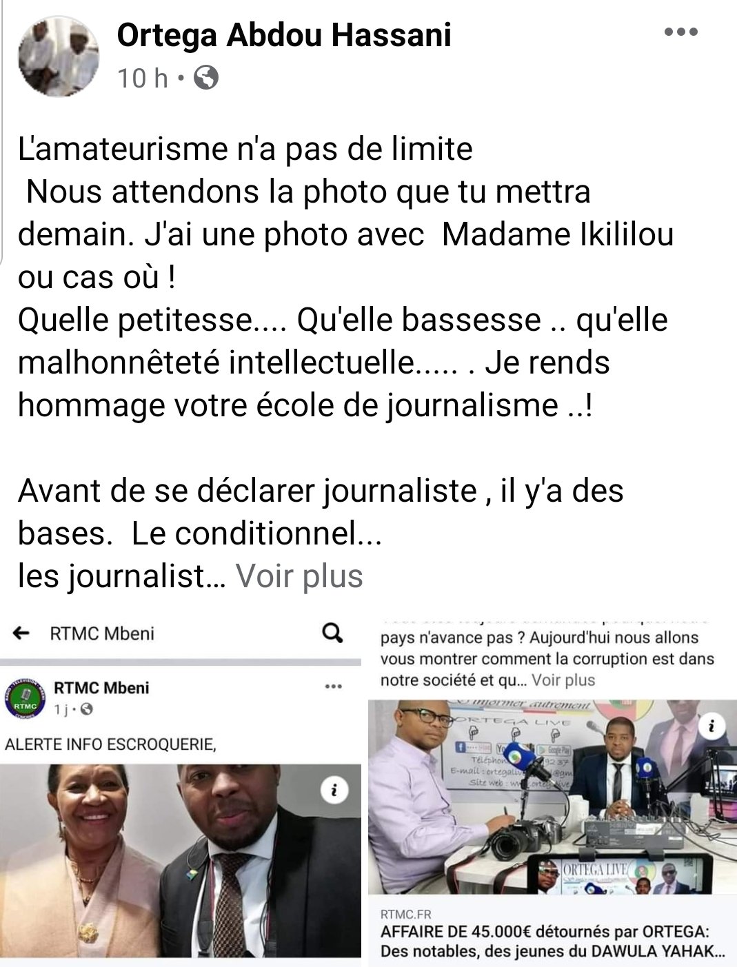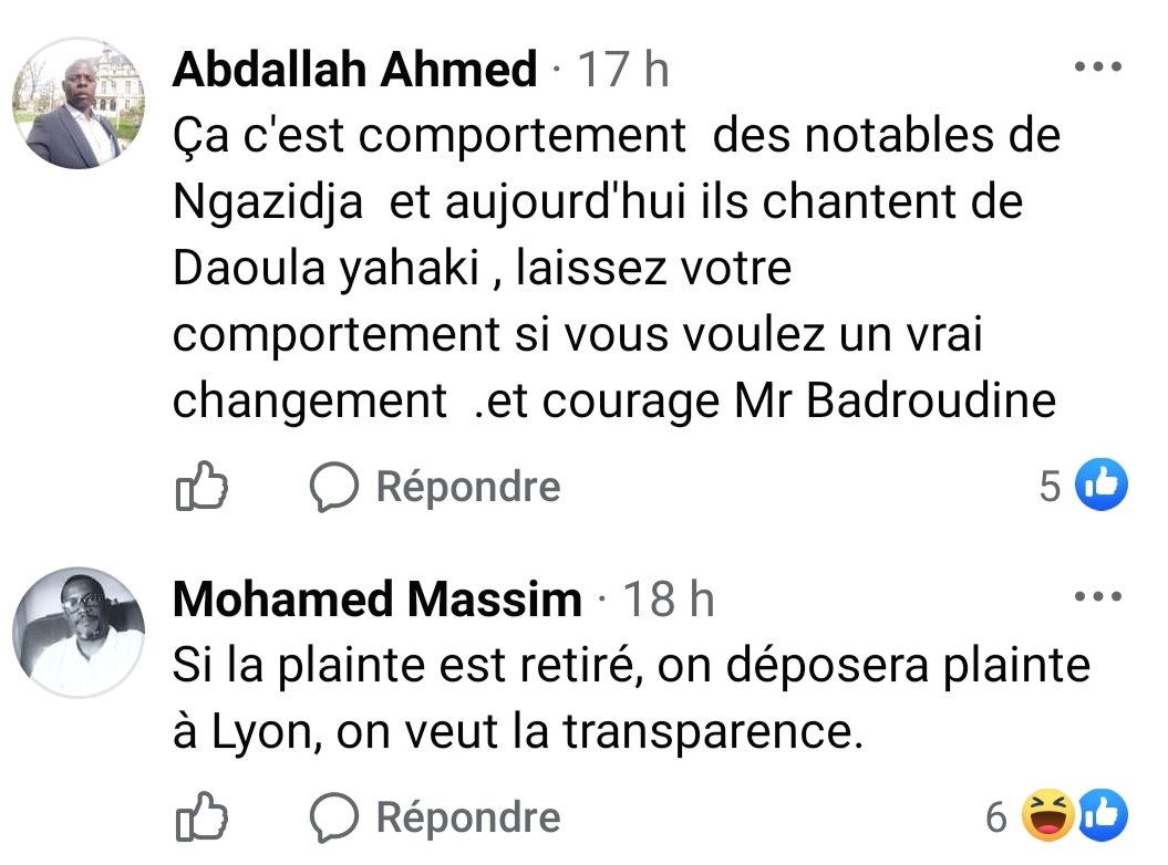 Pour étouffer l’affaire les proches d’Ortega ont envoyé une délégation de cadres chez Badroudine pour qu’il retire sa plainte. Et ce mercredi une réunion est prévue par les notables parisiens pour voir Badroudine. Nos confrères de Rtmc ont relaté les faits sans prise de position mais ils sont aujourd’hui pointés du doigt d’être des jaloux.
