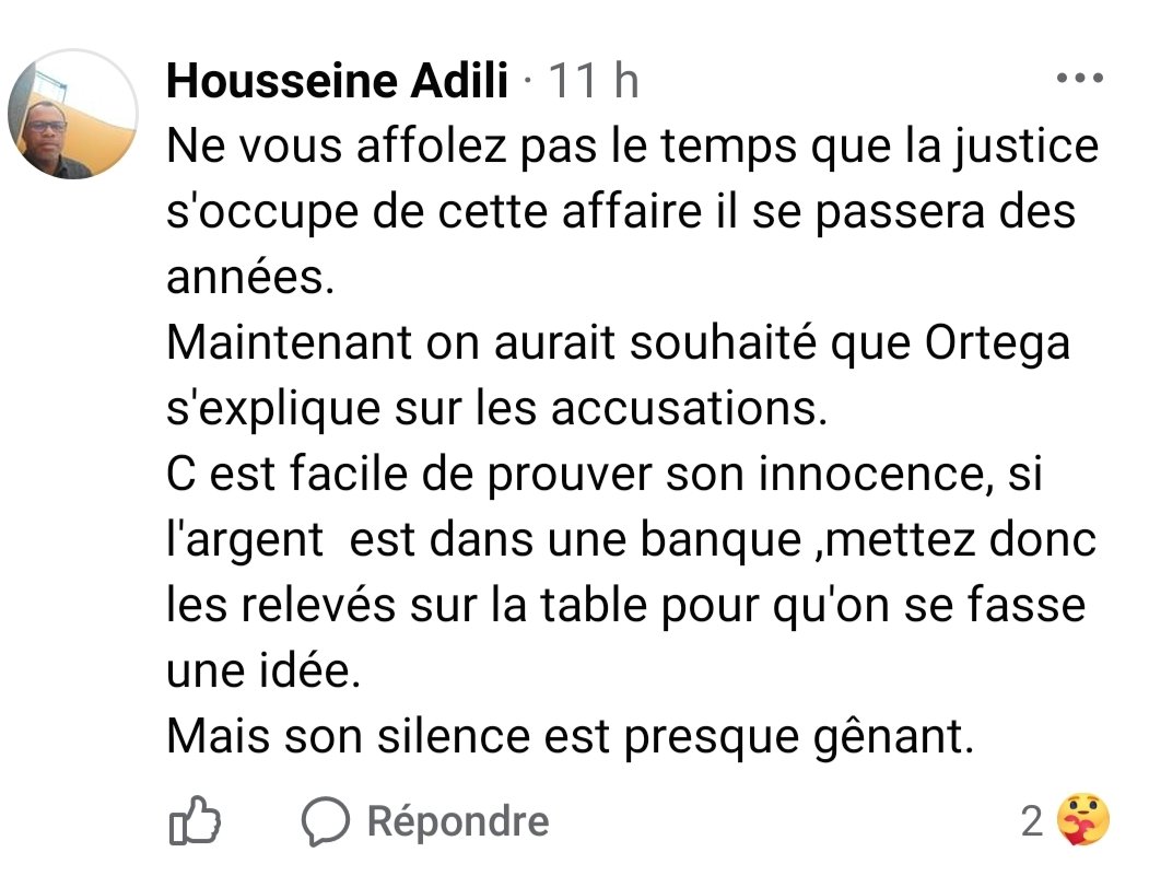 Le moment n’est-il pas venu, nous journaliste de laisser la justice faire son travail ? Pourquoi les amis d’Ortega cherchent ils à étouffer cette affaire ? Les amis d’Ortega devraient se mobiliser pour lui chercher un bon avocat car les choses risquent de se compliquer lorsqu’il sera convoqué au commissariat, il risque d’être maintenu en détention.