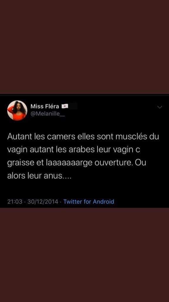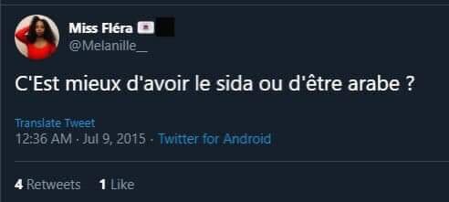 Nous condamnons avec la plus grande fermetée ces propos choquants et racistes et nous appelons à signaler ce compte Twitter.