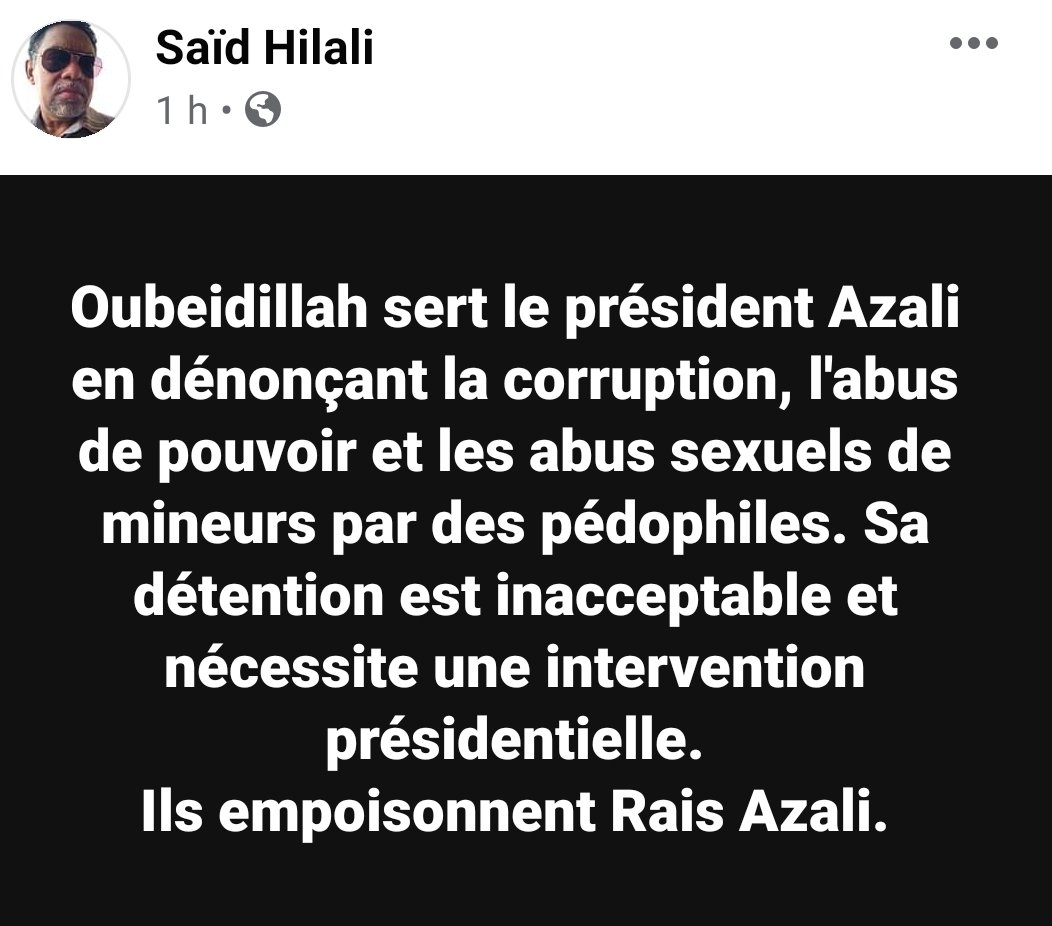 Les appels à la libération du journaliste Oubeid Mchagama se multiplient. Les personnalités politiques proches du pouvoir comme ceux de l’opposition sont unanimes et appellent à libérer Oubeid Mchagama. Said Hilali interpelle le président Azali.