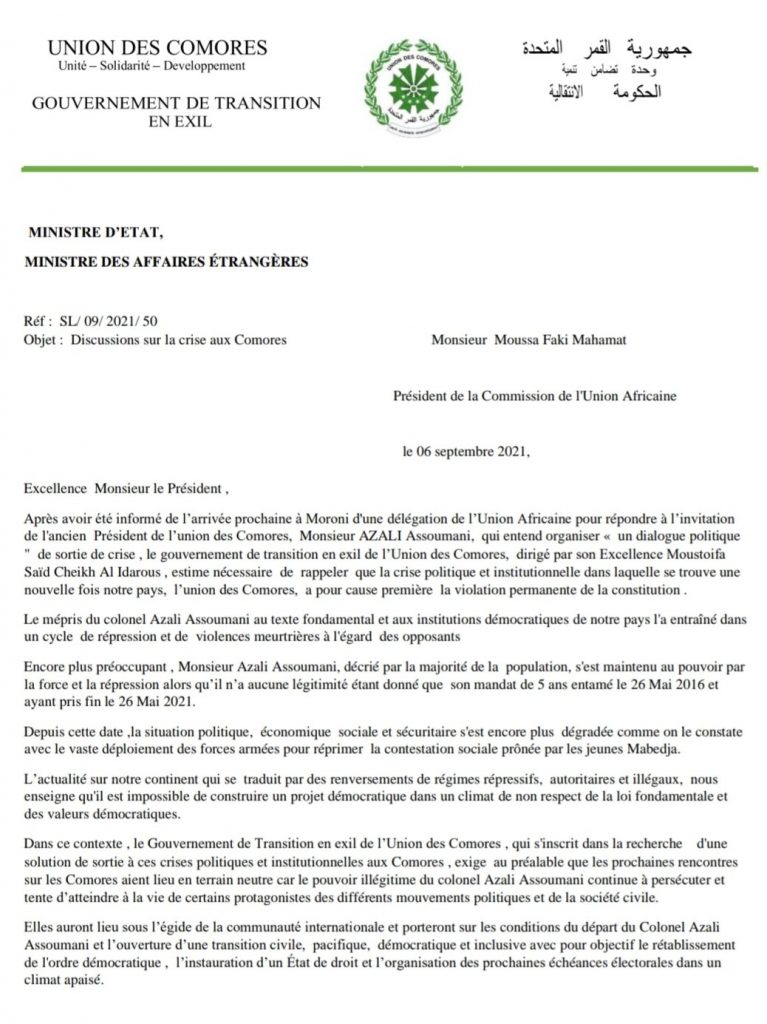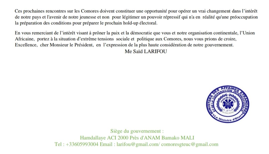 2 commentaires sur Said Larifou adresse un message à l’Union Africaine sur la crise aux Comores
